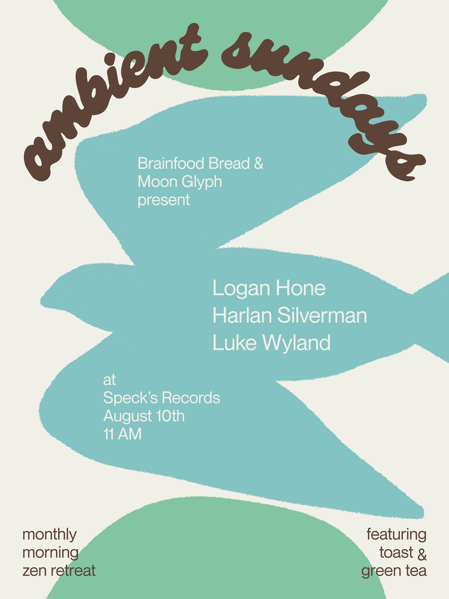 August 10: I will perform my "Serene Melodies" with my flute at "Ambient Sundays" at Speck's Records, presented by Brainfood Bread & Moon Glyph